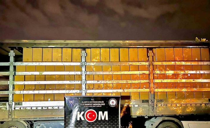 Kaçakçılık ve Organize Suçlarla Mücadele Şube Müdürlüğü Alanya KOM Büro Amirliği ekipleri tarafından Alanya ilçesinde bir tırda arama yapıldı. Aramada tır dorsesinde 4 tona yakın kaçak tütün ele geçirildi. Olayla ilgili 2 şüpheli hakkında “5607 Sayılı Kanun’a Muhalefet Etmek” suçundan işlem yapılarak adli makamlara sevk edildi.