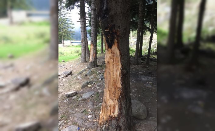 Trabzon’un Araklı ilçesinde ormanlık alandaki çok sayıda çam ağacının gövdesinin çıra için tahrip edilmesi görenlerin tepkisine neden oldu.