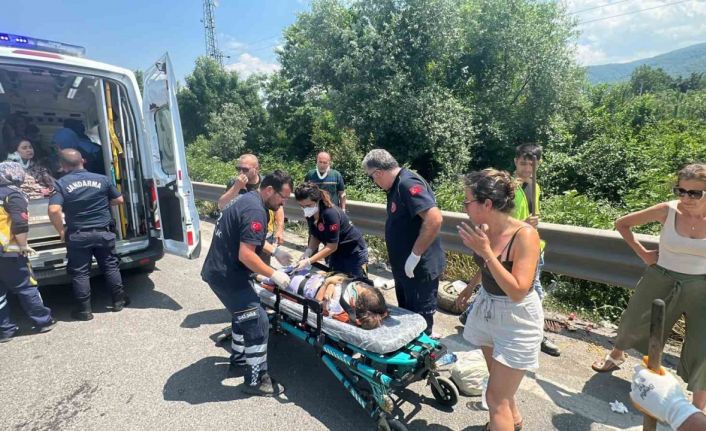 Anadolu Otoyolu Düzce geçişinde iki otomobilin çarpışması neticesinde meydana gelen kazada 5’i çocuk 8 kişi yaralandı.