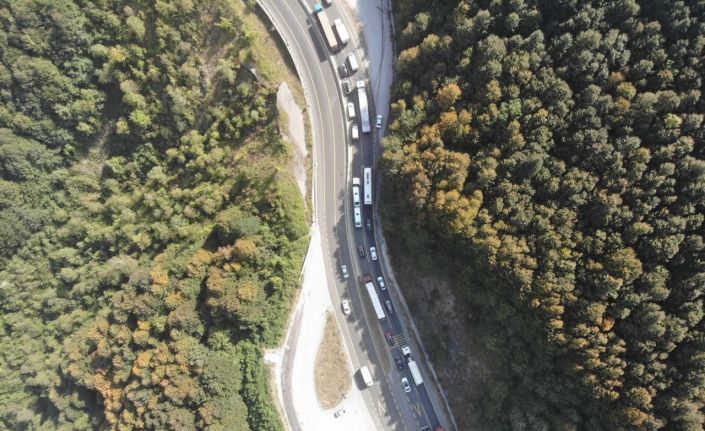 Ankara istikametindeki trafik, D-100 kara yolu üzerinden sağlanıyor. Bolu Dağı’nın dik rampalarında arıza yapan araçlar sebebiyle trafiğin Ankara istikameti zaman zaman durma noktasına geldi. Uzun araç kuyruklarının oluştuğu Bolu Dağı dron ile havadan görüntülendi.