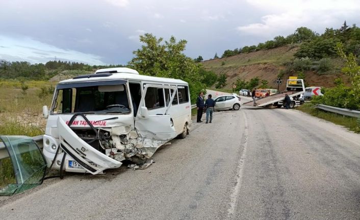 Burdur’un Karamanlı ilçesinde işçi servisi ile otomobilin çarpışması sonucu meydana gelen kazada 13 kişi yaralandı.