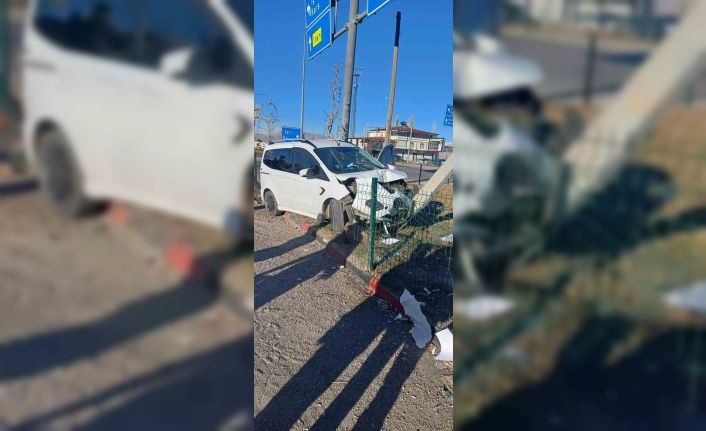 Ağrı’nın Doğubayazıt ilçesinde direksiyon hakimiyetini kaybeden sürücü elektrik direğine çarptı.