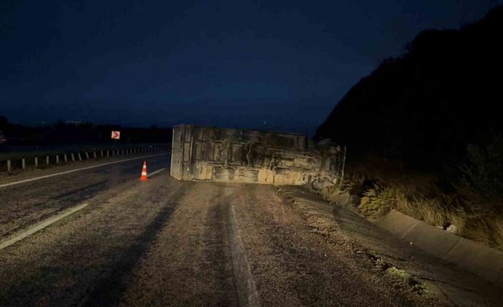 Taştepe mevkisinde Bahadır Aslan (54) yönetimindeki 16 ASG 32 plakalı, yaklaşık 9 ton un ve yağ taşıyan kamyon, iddiaya göre direksiyon arızası nedeniyle kontrolden çıkarak devrildi. Kaza sonrası ekiplerin hızlı müdahalesiyle yol tek şeritten kontrollü olarak trafiğe açıldı. Şans eseri kazada herhangi bir yaralanma ya da can kaybı yaşanmazken, kamyonun taşıdığı yükte de zarar olmadığı bildirildi.