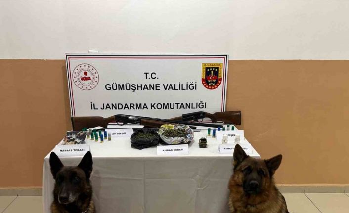 Alınan bilgiye göre, Gümüşhane İl Jandarma Komutanlığı Kaçakçılık ve Organize Suçlarla Mücadele Şube Müdürlüğü (KOM) ve Şiran İlçe Jandarma Komutanlığı ekipleri tarafından yapılan istihbari çalışmalarda Şiran ilçesi Karaşeyh köyünde ikamet eden M.Ş.’nin evinde uyuşturucu bulunduğu bilgisine ulaşıldı. İlgili makamlardan alınan arama kararının ardından şahsa ait ev, eklenti ve araçta uyuşturucu arama köpeği ‘Delil’ ve bomba arama köpeği ‘Maske’nin de katılımıyla arama gerçekleştirildi. Yapılan aramada 1 adet hassas terazi, 500 gram kubar esrar, 2 gram kenevir tohumu, 2 adet yivsiz av tüfeği ve 21 adet yivsiz av tüfeği mermisi ele geçirildi. Gözaltına alınan M.Ş., çıkarıldığı mahkemece tutuklanarak Gümüşhane Kapalı Ceza İnfaz Kurumuna gönderildi.