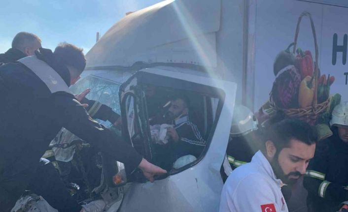 Tekirdağ’ın Ergene ilçesinde kırmızı ışıkta duran kamyonete arkadan çarpan kamyonetin sürücüsü sıkıştığı araçtan itfaiye ekiplerince yaralı kurtarıldı.
