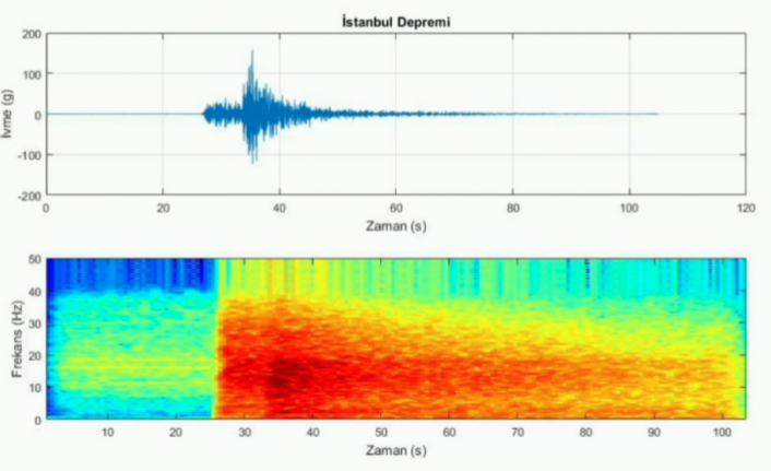 İstanbul’daki 6,2 büyüklüğündeki depremin olduğu anlardaki sesi kaydedildi. Kocaeli Üniversitesi’nden Dr. Hamdullah Livaoğlu ve Doç. Dr. Erman Şentürk, "Ses, tiz sakin başlayıp ana şokun tok bir sesle boşalttığı enerjiyi spektral güç yoğunluğu olarak temsil etmektedir" dedi.