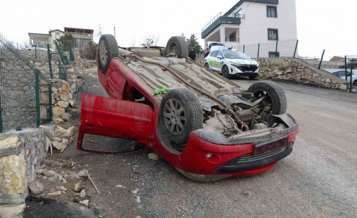 Malatya’da site çıkışı kontrolden çıkıp istinat duvarına çarparak ters dönen araçtaki 1 kişi yaralandı.