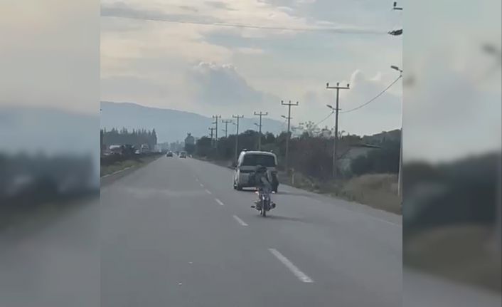 Öte yandan, Milas - Bodrum karayolunda kaydedilen başka bir görüntüde bir motosiklet sürücüsünün motosikletini uzanarak sürdüğü kameralar tarafından anbean kaydedildi.