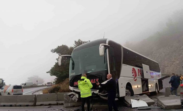 Edinilen bilgiye göre, Ula ilçesi Sakar rampasında yağışlı havanın etkisiyle sürücüsünün direksiyon hakimiyetini kaybettiği Pamukkale Turizm’e ait 35 YS 236 plakalı yolcu otobüsü, yol ortasındaki bariyerlere çarptı. Otobüs, bariyerlerin üzerine çıkarak durabildi. Kazanın 112 Acil Çağrı Merkezi’ne bildirilmesi üzerine bölgeye sağlık ve polis ekipleri sevk edildi. Kazada yaralanan 5 kişiden 2’si sağlık ekipleri tarafından Muğla Eğitim ve Araştırma Hastanesi’ne kaldırıldı, 3 kişinin ise tedavisi ayakta yapıldı. Yaralıların hayati tehlikesinin bulunmadığı öğrenildi.