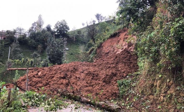 Tamamen kapanan köy yolunun açılması ve aracın kurtarılması için Rize İl Özel İdare ekipleri tarafından çalışma başlatıldı.