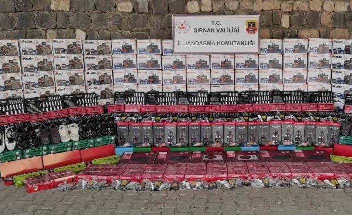 Şırnak İl Jandarma Komutanlığı Kaçakçılık ve Organize Suçlarla Mücadele Şube Müdürlüğünce Silopi, Cizre ve İdil ilçelerinde yapılan operasyonlarda, 6 adet cep telefonu, 3 adet uyuşturucu kullanma aparatı, 6 bin 367 adet bandrolsüz sigara, 347 adet elektronik sigara, 184 adet kaynak makinesi, 44 adet ayakkabı, 22 adet elektronik eşya, 267 inşaat malzemesi, 660 adet anahtar takımı, 110 adet muhtelif ev-büro eşyası, 3 bin 174 adet el aletleri, 288 adet kozmetik malzemesi, 780 adet mutfak eşyası, 184 adet kaynak makinesi, 4 adet sikke, 1 adet yüzük ele geçirildi.