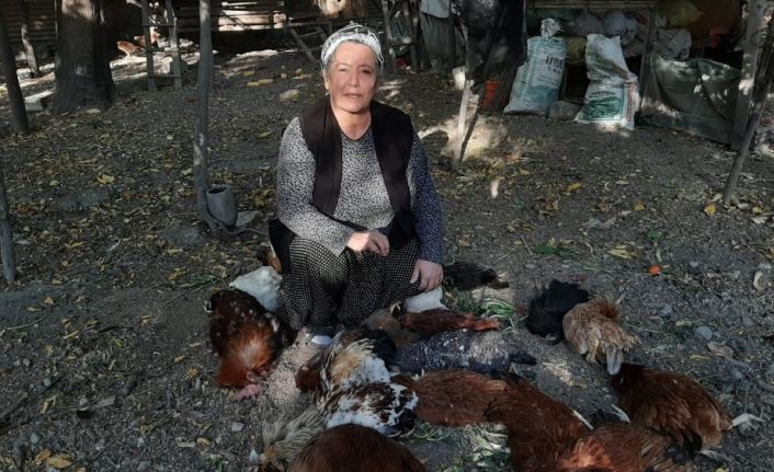 Osmaniye’nin Sumbas ilçesinde evinin bahçesindeki kümeste baktığı tavukları zehirlenen Medine Göde, telef olan tavuklarının ardından gözyaşı döktü.