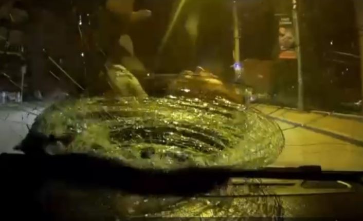 Kaza anı ise hem araç içi kamerasına hem de çevrede bulunan bir iş yerinin güvenlik kameralarına anbean yansıdı.