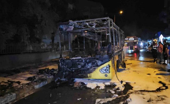 Aydın’ın Nazilli ilçesinde şehiriçi yolcu otobüsünde çıkan yangın itfaiye ekipleri tarafından söndürülürken, otobüs küle döndü.