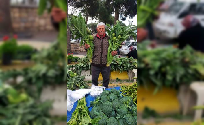 Baharın gelişiyle birlikte taze sebzelerle dolup taşan pazarda en çok ilgi gören ürünlerin başında enginar, olurken Gölhisar Mahallesi’ndeki üreticilerden Sedat Çetin’in, pazara getirdiği büyük ve taze enginarlar vatandaşların ilgisini çekiyor. Yapraklarıyla birlikte satılan enginarlar, tanesi 70 TL’den alıcı buluyor.