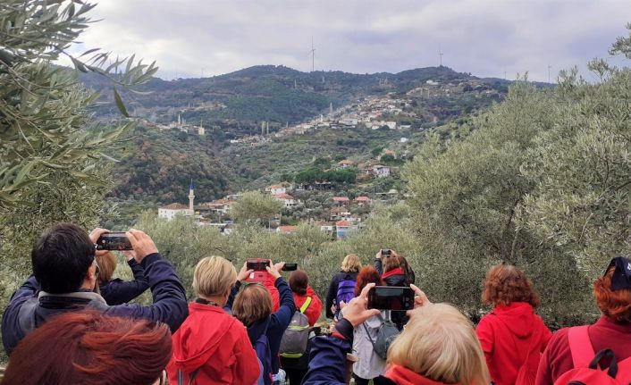 Her zaman olduğu gibi doğa ve kültür gezilerinin devam edeceğini ifade eden EKODOSD Başkanı Bahattin Sürücü, gezi ile ilgili bilgi vererek “Timinciler Çayı vadisinden aşağıya doğru yürüdük. Bizim yürümekte zorluk çektiğimiz eğimli arazilerde beyaz çadırlarını açarak ürünlerini toplayan zeytin emekçilerine hayranlık duyup, ölmez ağaç asırlık zeytinlerin içinden geçip doğanın sesini dinledik. Rotamız üzerindeki antik yolun kenarındaki tarihi çeşmeleri inceledik, beyaz mersinlerin tadına bakıp, pınarlarından sular içtik. Rotamız üzerinde zeytinliklerin içinde yer yer kalmış antik taş döşeme yollardan yürüyüp, tarihi çiftlik evlerini inceledik. Daha önce Aydın Kültür Varlıklarını Koruma Bölge Kurulu Müdürlüğü’ne korunması ve tescil edilmesi için müracaat ettiğimiz zeytin işliğinde bir inceleme yaptık. Bulunan kalıntıların antik dönemin somut örnekleri olduğunu, bölgedeki zeytin kültürünün antik dönemden günümüze kadar devam ettiğini, gelecek kuşaklara ulaştırılması için zeytin ağaçlarının mutlaka korunması gerektiğini belirttik. Zeytinlikler arasında büyük zahmetlerle yapılan sınır duvarlarının arasından yürüyüp, kekik kokuları arasında vadiden akan çayın içine indik. Timinciler Çayı’nın siyah renkli bir boya gibi aktığını gördük. Bunun nedeninin yukarıda havzada yer alan zeytinyağı işletmelerinden çaya verilen kara atık suların olduğunu söyledik. Özellikle kurak geçen bu mevsimde bir damla suyun bile çok önemli olduğunu, doğaya karışan atık suların Büyük Menderes Nehri’ne karıştığını, nehir sularının önce Bafa Gölü Tabiat Parkı’na sonra da Büyük Menderes Deltası Milli Parkı’nın içinden geçerek Ege Denizi’ne ulaştığını anlattık” dedi.
