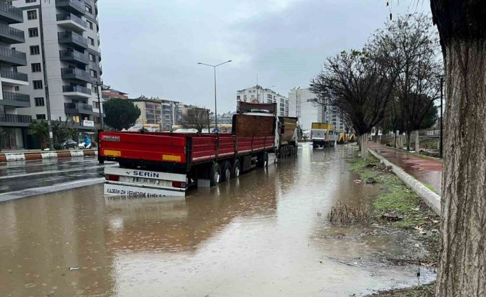 Aydın’da gece saatlerinden itibaren etkili olan kuvvetli sağanak yağış İncirliova ilçesinde karayolunu göle çevirdi.