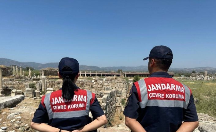 Aydın’da çevre koruma çalışmalarına devam eden jandarma ekipleri, Germencik ilçesinde bulunan Magnesia Antik Kenti ve 800 yaşındaki Anıt Ağacı kontrol etti.