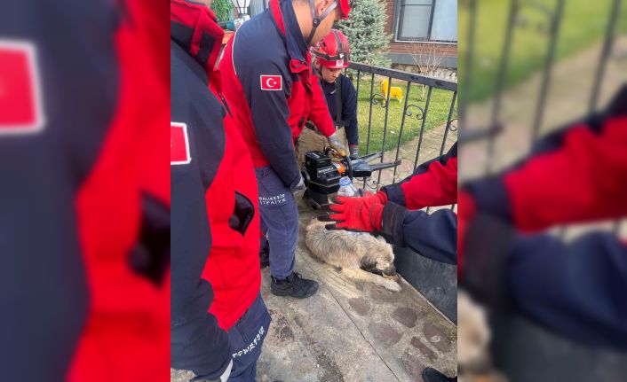Balıkesir’in Balya ilçesinde evin demir parmaklı kapısına sıkışan köpeği itfaiye ekipleri hidrolik demir kesme makası ile parmaklıkları keserek, kurtardı. İtfaiye ekipleri demir parmaklı kapıdan kurtardıkları köpeği yem vererek, doyurdular.