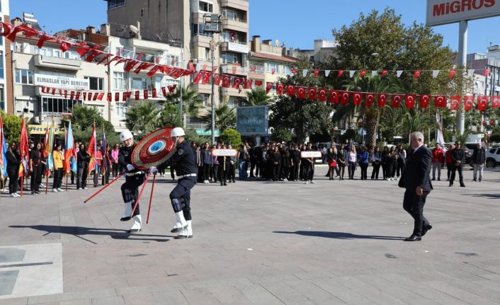 Şehit Hamdibey Meydanı’nda gerçekleştirilen törende Edremit Kaymakamı Ahmet Odabaş, 19. Komando Tugay Komutanı Vekili Kurmay Albay İsmail İbiş ve Edremit Belediye Başkanı Mehmet Ertaş, Atatürk anıtına çelenk sundular.
