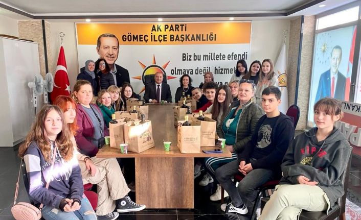 Gömeç Mutfağı’nın en özel tatlarının ikram edildiği öğrenciler, kendilerini konuk eden Başkan Uslu’yu AK Parti Gömeç İlçe Başkanlığı binasında ziyaret ederek teşekkür etti.