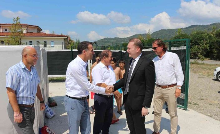 Bartın’ın Ulus ilçe Kaymakamı Mehmet Sadık Kılıç, Gençlik ve Spor Bakanlığı’nın “Yüzme bilmeyen kalmasın”, “7’den 70’e herkes yüzme öğreniyor” sloganı ile başlattığı proje bünyesinde Ulus ilçesi Abdipaşa beldesinde kurulan portatif yüzme havuzunda devam eden yüzme kursunu ziyaret etti.