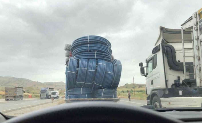 Dün akşam saatlerinde Kozluk yolunda boru yüklü kamyonet, kendi yüksekliğinin neredeyse iki katı yüksekliğine ulaşan yüküyle tehlikeye davetiye çıkardı. Aracın tehlikeli yolculuğu bir başka araçtaki vatandaşın cep telefonu kamerasına yansıdı.