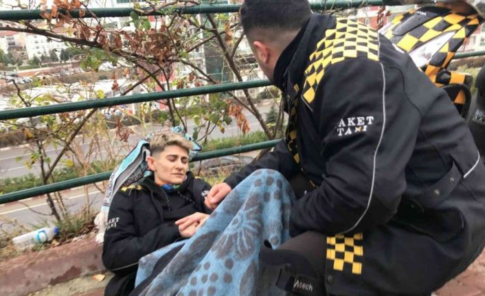 Bilecik’te motosikletin devrilmesi sonucu meydana gelen kazada yaralanan sürücüyü, yoldan geçen diğer bir sürücü aracından getirdiği battaniyeyi üzerine örterek soğuktan korumaya çalıştı.