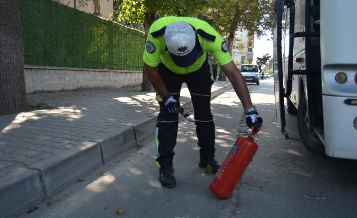 Öte yandan polis ekipleri, denetledikleri servislerin içerisinde bulunan öğrencileri emniyet kemeri konusunda uyardı. Servis içine binerek öğrencileri, arabanın hareket etmesinden itibaren güvenli bir şekilde yolculuk yapmaları adına emniyet kemerleri takmaları gerektiğini anlatan polis ekipleri, çocuklara da yeni eğitim ve öğretim yıllarında başarılar diledi.