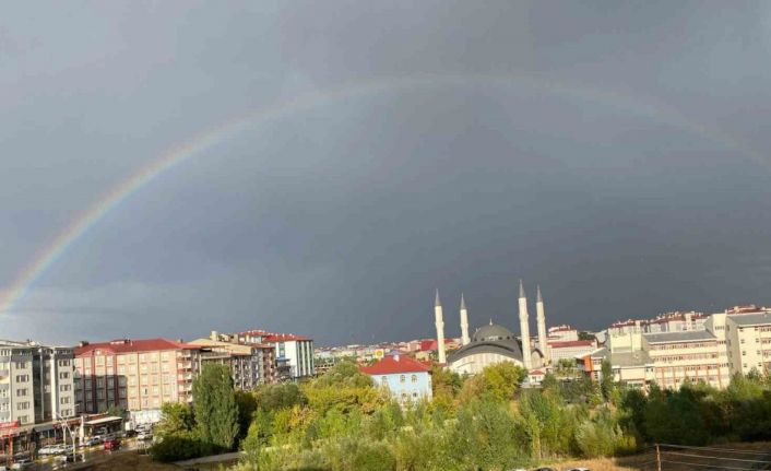 Ağrı’da aralıklarla yağan yağmurun ardından Ulu Camii üzerinde oluşan gökkuşağı, kentteki vatandaşlara muhteşem bir manzara sundu. Rengarenk görüntüsüyle göz kamaştıran gökkuşağı, kısa süreliğine de olsa Ağrı’yı renklendirdi.