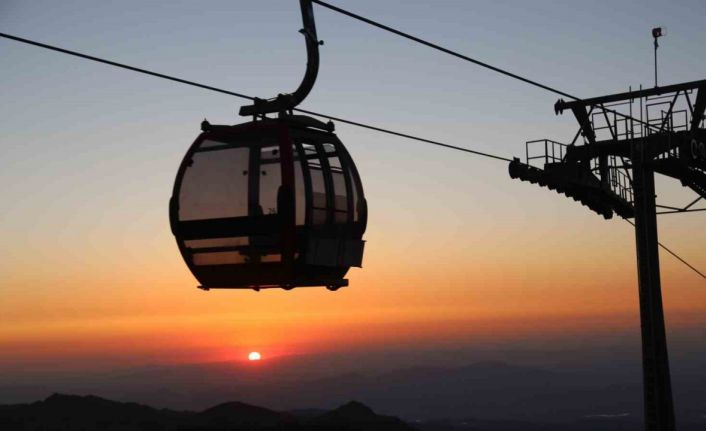 Hacılar Kapı’dan çekilen ve teleferiklerin de yer aldığı gün batımı fotoğrafları kartpostallık görüntüler oluşturdu.