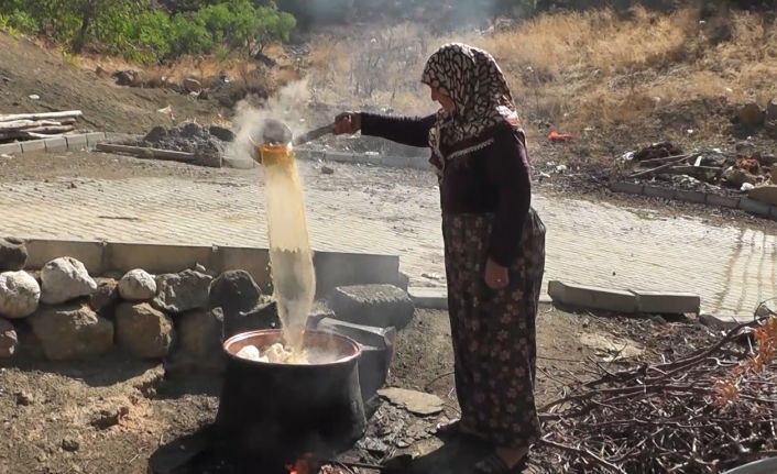Dulkadiroğlu ilçesi Bertiz Mahallesi’nde pekmez ve un sucuğu yapımı devam ediyor. Bölge adeta şıra fabrikası gibi çalışıyor. Bölgede yaklaşık bin üretici, yöresel ürün pazarına ürünleriyle katma değer sunuyorlar.