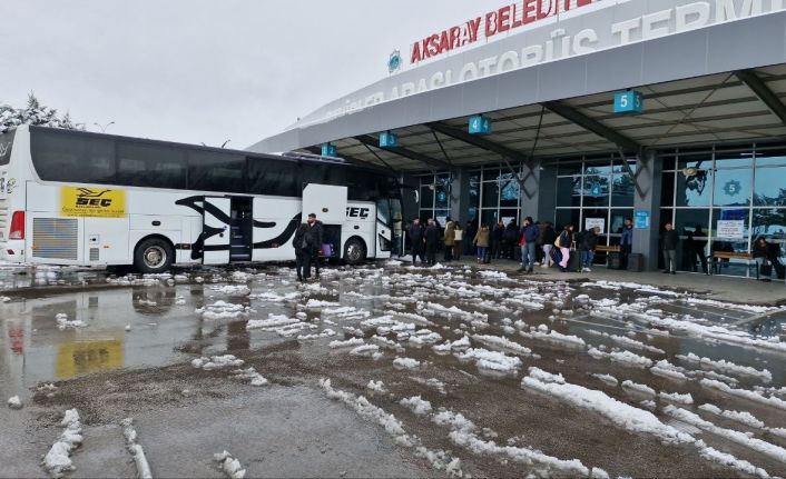 Aksaray’ı çevre illere bağlayan karayollarından bazılarının kar yağışı nedeniyle trafiğe kapatılmasıyla birlikte otobüs seferleri yavaşlarken bazı seferler de durduruldu.