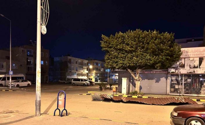 Hatay’da gece saatlerinde etkili olan fırtına ağaçları yerinden söktü, çatları uçurdu.