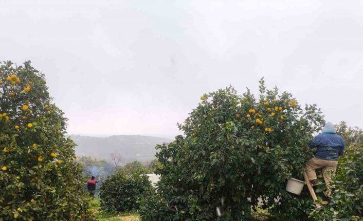 Kar yağışı altında limon hasadı kısa sürse de ayrı bir görsel şölen sundu. Yaklaşık 10 dakika etkili olan kar tutmadan eridi.