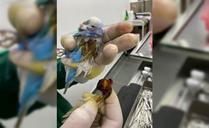 Zonguldak’ta iki buçuk yaşındaki muhabbet kuşunun kanadından fındık büyüklüğünde tümör alındı.