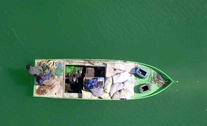 Bitlis’in Ahlat ilçesindeki Nazik Gölü’nde yasak öncesi tekneleri ile balık avı yapan avcılar dron ile görüntülendi.