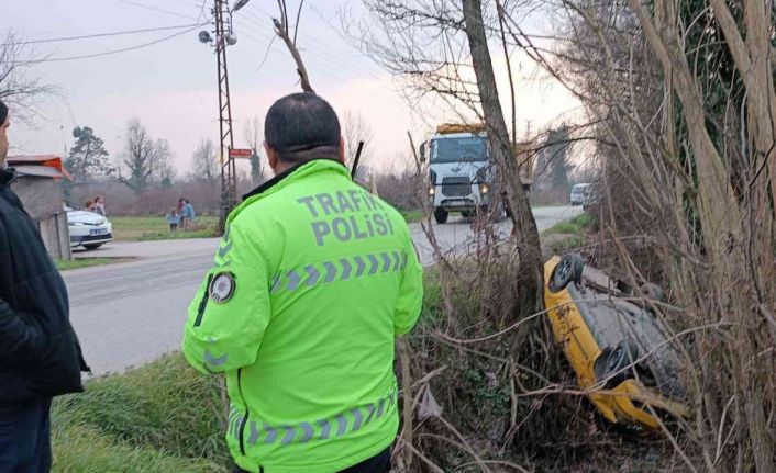 Düzce’de sürücüsünün direksiyon hakimiyetini kaybettiği otomobil takla atarak yol kenarındaki kanala uçtu. Kanalda ters dönen otomobilden sürücü yara almadan kurtuldu.