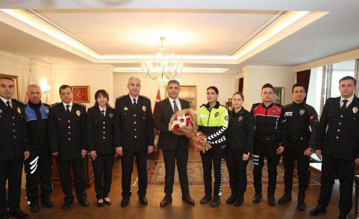 DÜZCE(İHA) – Düzce Valisi Selçuk Aslan, 10 Nisan Polis Haftası kapsamında, Düzce İl Emniyet Müdürü İbrahim Ergüder ve emniyet teşkilatı personellerini makamında ağırladı.