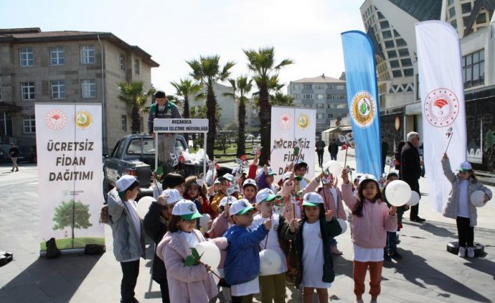 DÜZCE(İHA) – Akçakoca’da orman dostu minik öğrencilere Orman Haftasında sincap çocuk tişörtleri, şapkaları ve rüzgar gülleri hediye edildi.