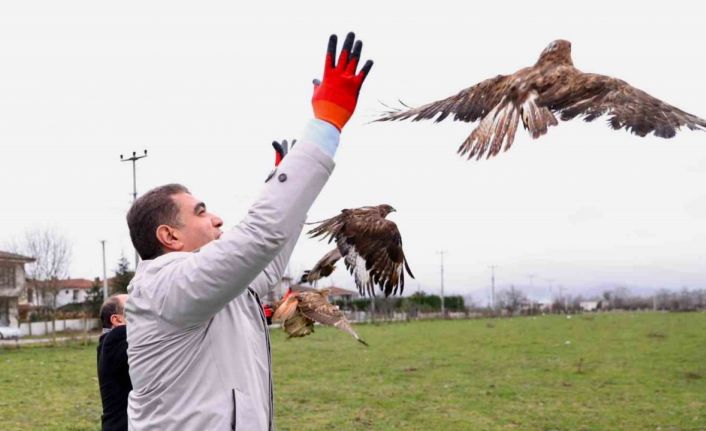 DÜZCE(İHA) – Düzce’de vatandaşlar tarafından yaralı olarak bulunan ve Doğa Koruma ve Milli Parklarda tedavisi tamamlanan 4 kızıl şahin Vali Selçuk Aslan tarafından doğal yaşam alanlarına bırakıldı.