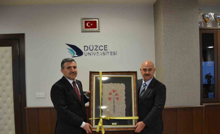 DÜZCE(İHA) – Son çıkan Valiler Kararnamesiyle Şırnak Valisi olan Vali Cevdet Atay, Düzce Üniversitesi Rektörü Prof. Dr. Nedim Sözbir’e veda ziyareti düzenledi.