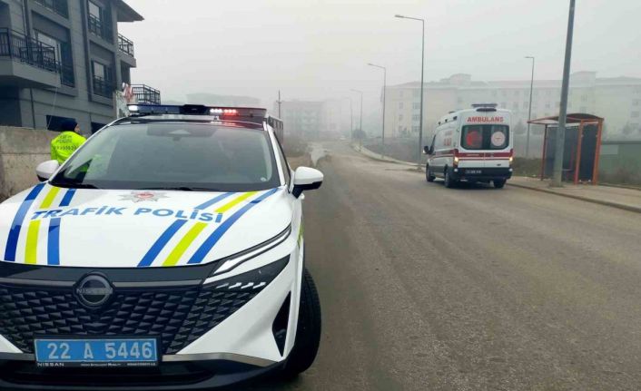 Edirne’de kaygan zeminde devrilen motosikletteki 2 kişi kazayı yara almadan atlattı.