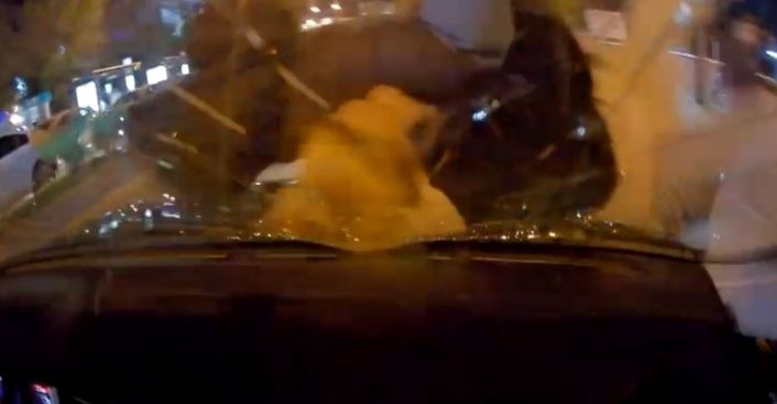 Edirne’de yaya geçidini kullanarak yolun karşısına geçmeye çalışan motosiklete otomobil çarptı. 2 kişinin yaralandığı kaza anı araç kamerasına yansıdı.