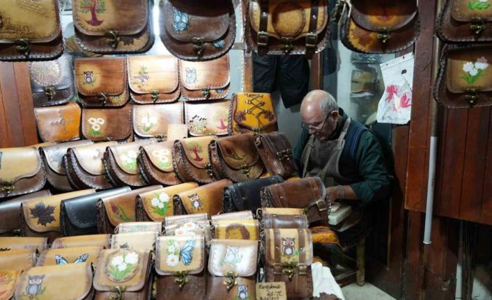 Gaziantep’in tarihi Bakırcılar Çarşısı’nda 75 yaşındaki Tahir Demirci, dedesinden kalan el yapımı çanta mesleğini 65 yıldır yaşatıyor.