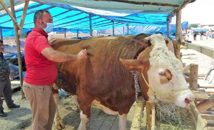 Tokat’ta Kurban Bayramın sayılı günler kala hayvan pazarında hareketlilik yaşanıyor. Kurban pazarının gözdesi olan 1.4 tonluk boğa ise dikkat çekiyor. 2,5 yaşında olan simental cinsi boğa 35 bin liraya alıcısını bekliyor. Besici Osman Yalçın, kurban pazarının gözdesinin ‘Şampiyon’ olduğunu söyledi. Son bir senedir besiye çektikleri kurbanlığın ilgi gördüğünü belirten Yalçın, “Çok yoğun bir ilgi var. Gelip fotoğraf çekinenler de oluyor. Gelip fiyat verenler de var. Ama biz 35 bin lirayı görmeden şampiyonu satmayı düşünmüyoruz. Bakımı, yem ücretleri oldukça fazla. Dolaysısı ile oldukça fazla emeğimiz var” dedi. Yalçın, Şampiyonu alacak kişiye sürpriz hediyesinin olacağını sözlerine ekledi.