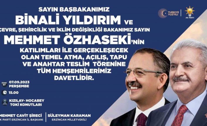 Çevre, Şehircilik ve İklim Değişikliği Bakanı Mehmet Özhaseki ile AK Parti Genel Başkan Vekili Binali Yıldırım, bir dizi temel atma ve açılış programlarına katılmak üzere Erzican’a geliyor.