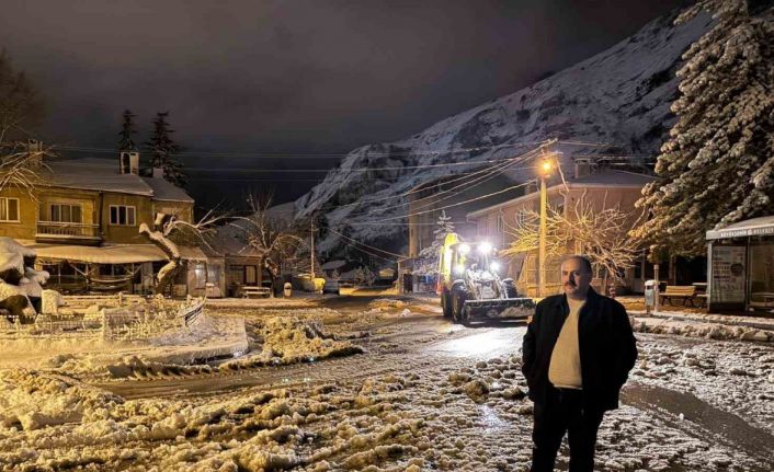 Eskişehir İnönü ilçesinde etkili olan kar yağışı sonrası İnönü Belediyesi, yol temizliği çalışmalarına gece saatlerinde itibaren başladı.