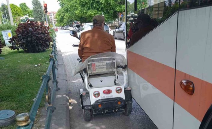 Eskişehir’de belediye otobüsünün elektrikli bisiklete çarpması sonucu meydana gelen trafik kazası ucuz atlatıldı.