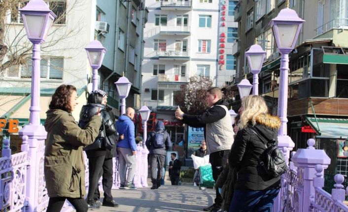 Hafta sonunu Eskişehir’de geçirmeyi tercih eden turist kafilesi, sabah saatlerinden itibaren Porsuk Çayı üzerinde fotoğraf çektirmeye başladı. Ülke içinden gelenler haricinde yurtdışından da epey talep gören Eskişehir, özellikle hafta sonları ziyaretçi akınına uğramaya devam ediyor. Nehrin içinden geçen gondollar ile aynı fotoğraf karesinde olmak için köprüde zaman geçiren ziyaretçiler ise Eskişehirli vatandaşlara yürüyecek alan bırakmıyor.